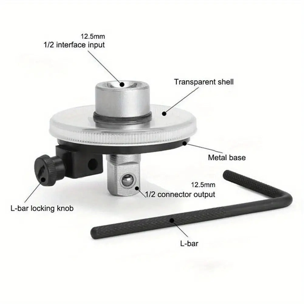 Adjustable 1/2 Inch Drive Torque Angle Gauge Auto Garage Tool Set Car Repair Hand Tools Feature: 1.Durable.2.Transparent shell, easy to read dial.3.Accurate reading.Specification: Material: aluminum alloy Size: 20*10.5cm/7.87*4.13" Note: 1.There may be slight size deviations due to manual measurement, different measuring methods and tools.2.The picture may not reflect the actual color of the item because of different pConflictmographing light, angle and display monitor.