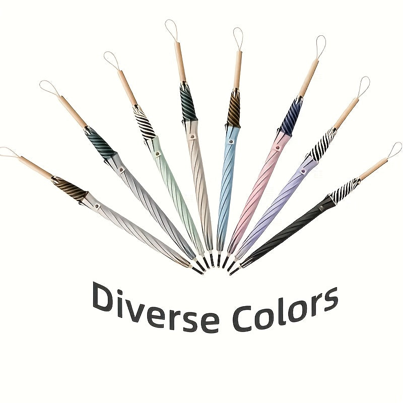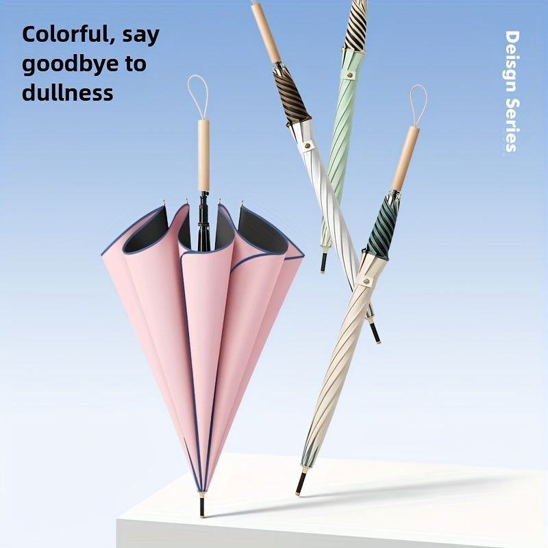 1-Pack Flower Petal Design Automatic Open Umbrella with Wood Handle