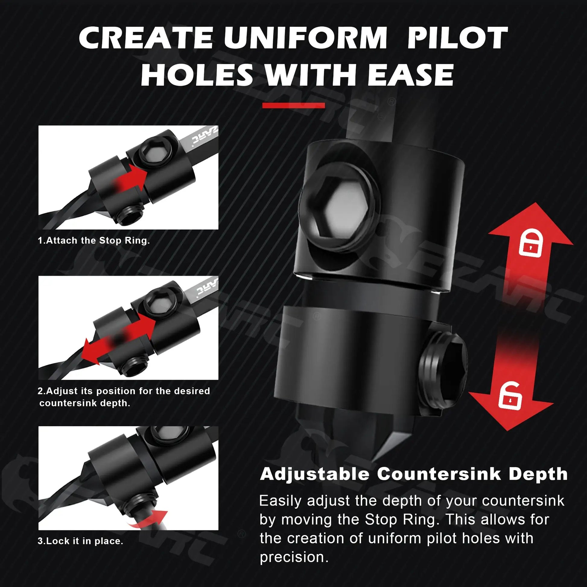 Accurate Depth Adjustment: Featuring adjustable depth stop collars, this wood countersink drill bit set ensures precise control over hole depth, delivering consistent and professional countersinking results every time.