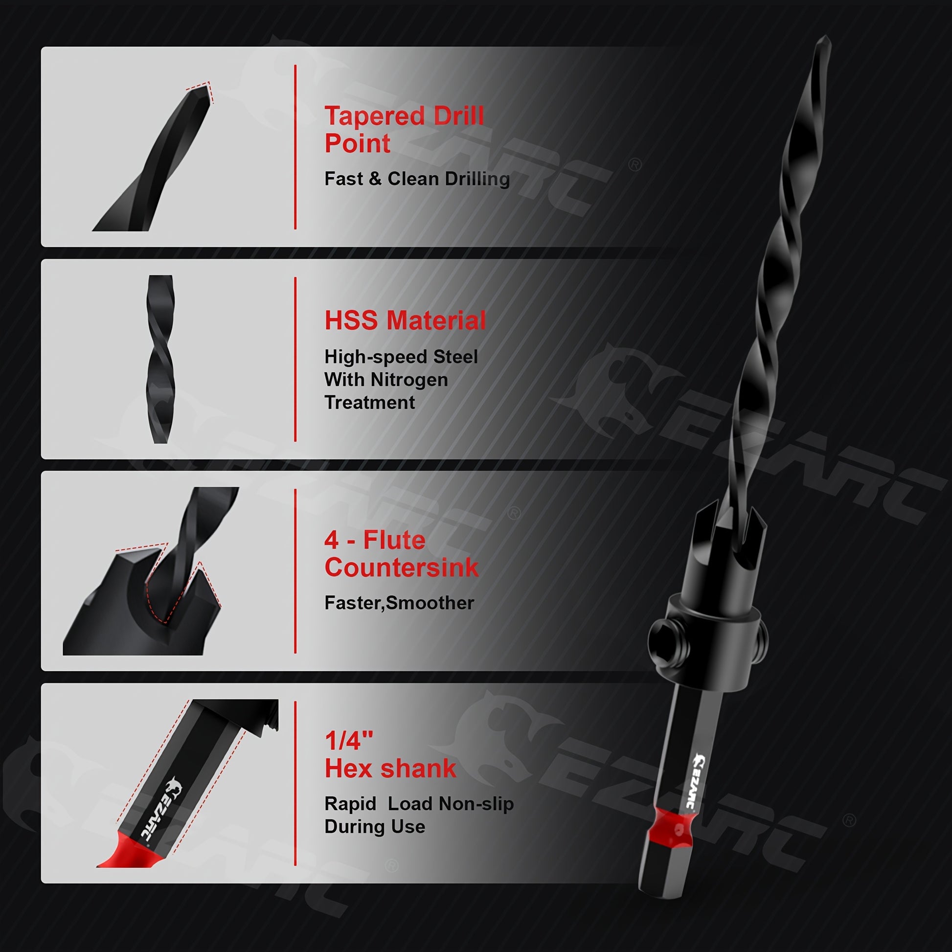 Smooth and Efficient Performan: With sharp cutting edges and an 82-degree counterbore angle, these bits drill quickly and cleanly through hard and soft woods.The tapered Flyer design creates perfect Flyer holes for secure screw fitting, combining drilling, countersinking, and counterboring in one seamless step.