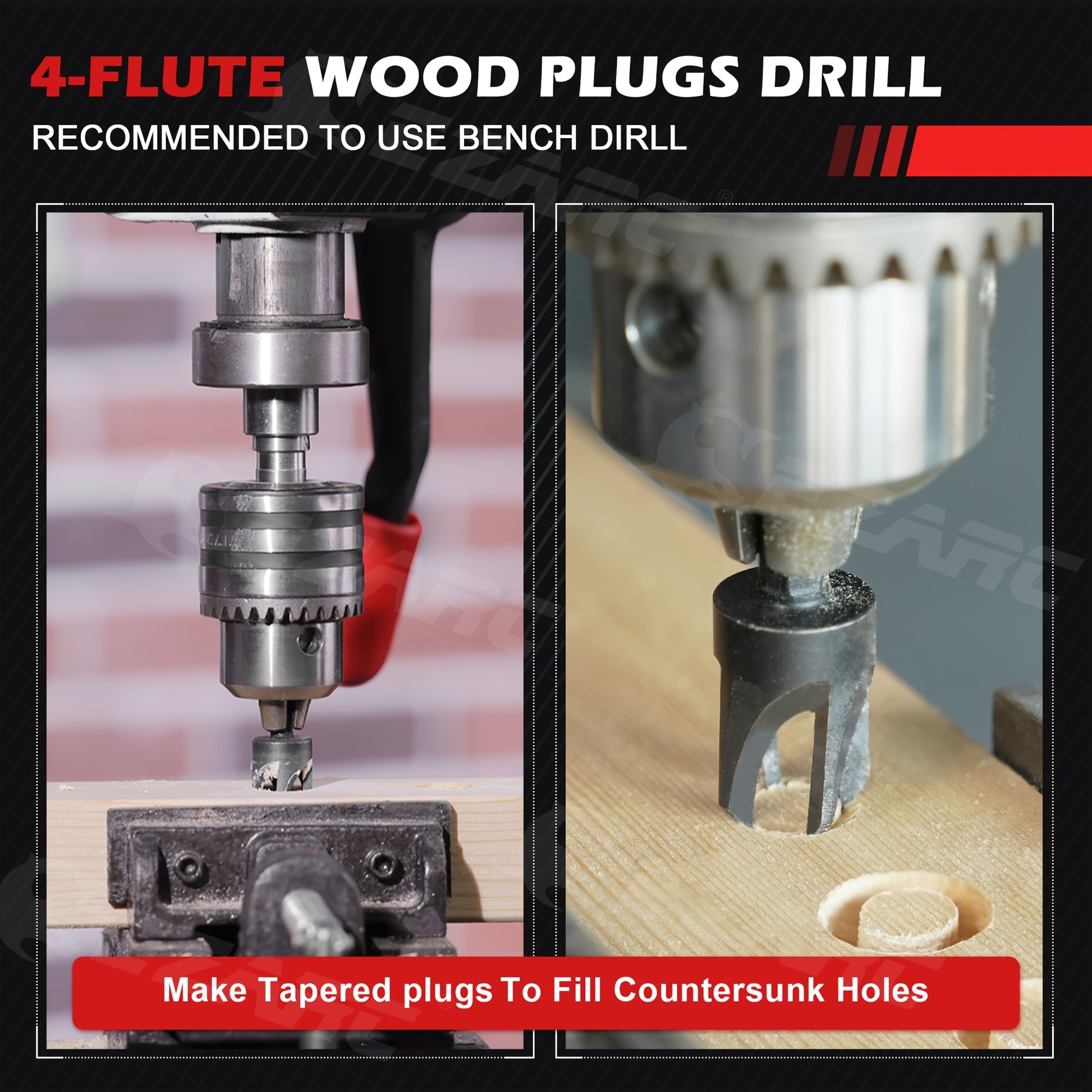 Adaptable for Any Project: Perfect for woodworking tasks like furniture crafting and cabinetry, this versatile countersink set works with hand drills, bench drills, and electric drills. For best results, use the wood plug cutters with a bench drill.