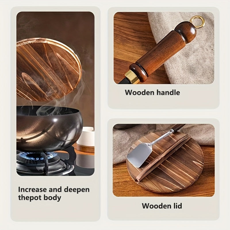 1pc Potbelly Cast Iron Pan with Lid