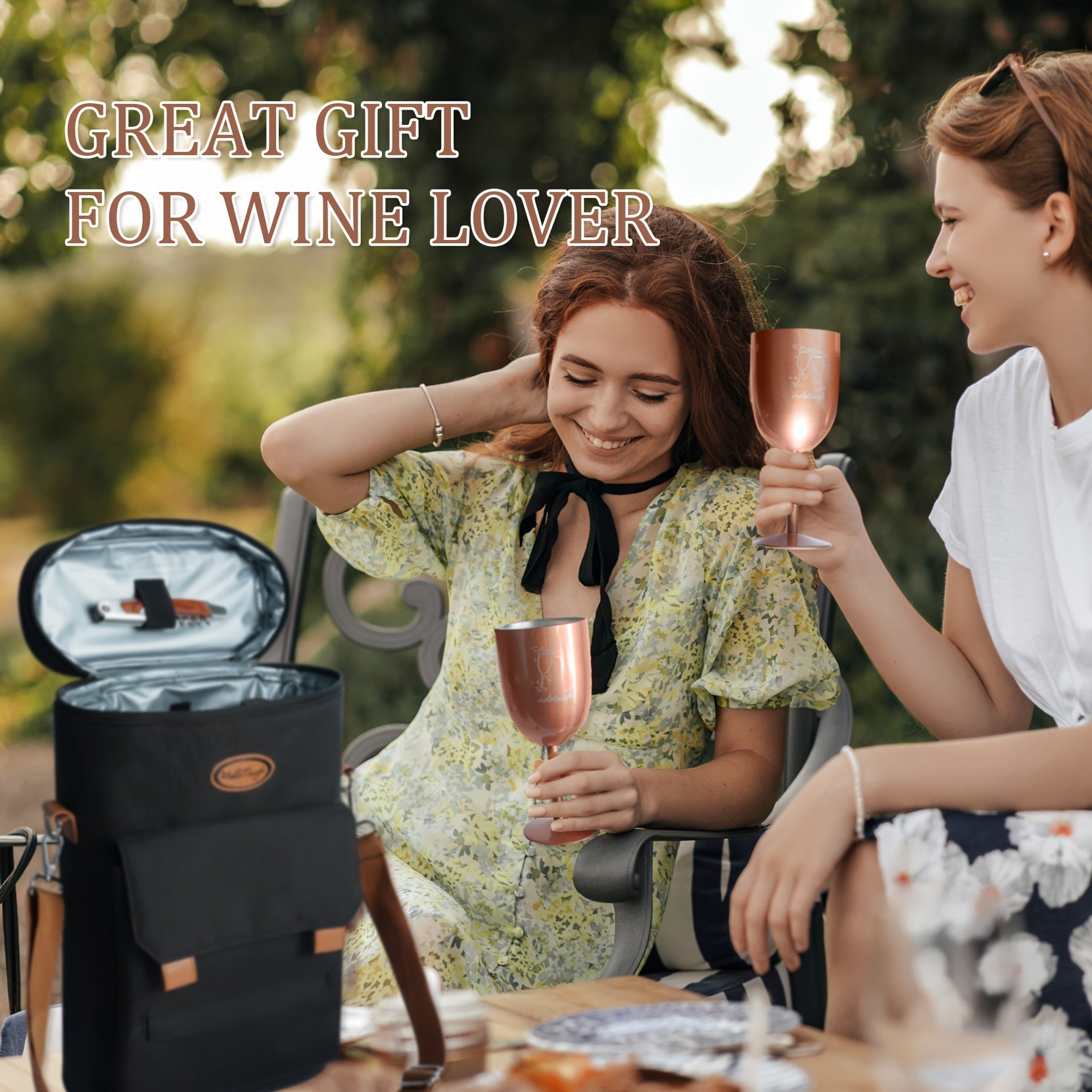 This is the perfect present for those who enjoy wine: If you appreciate wine and often take it outdoors— whether to a friend's gathering, wine tasting, picnic in the park, cruise, or while traveling— and need a way to keep it cool, the wine tote with glasses is a must-have. Its timeless design and functional style make it ideal for wine enthusiasts of all ages, making it a great gift for family, friends, girlfriends, and colleagues for any occasion, including birthdays, weddings, Christmas, and Thanksgiving.