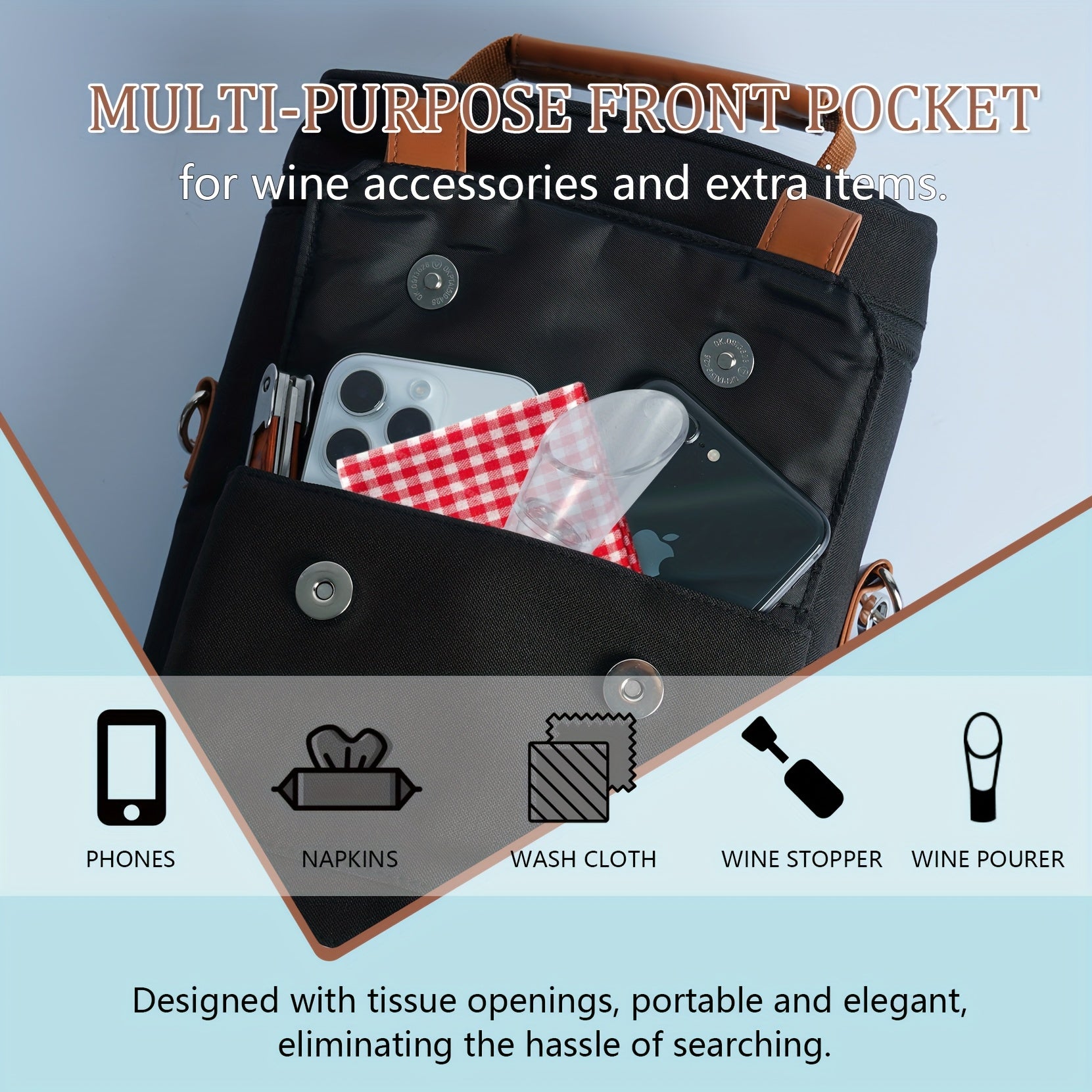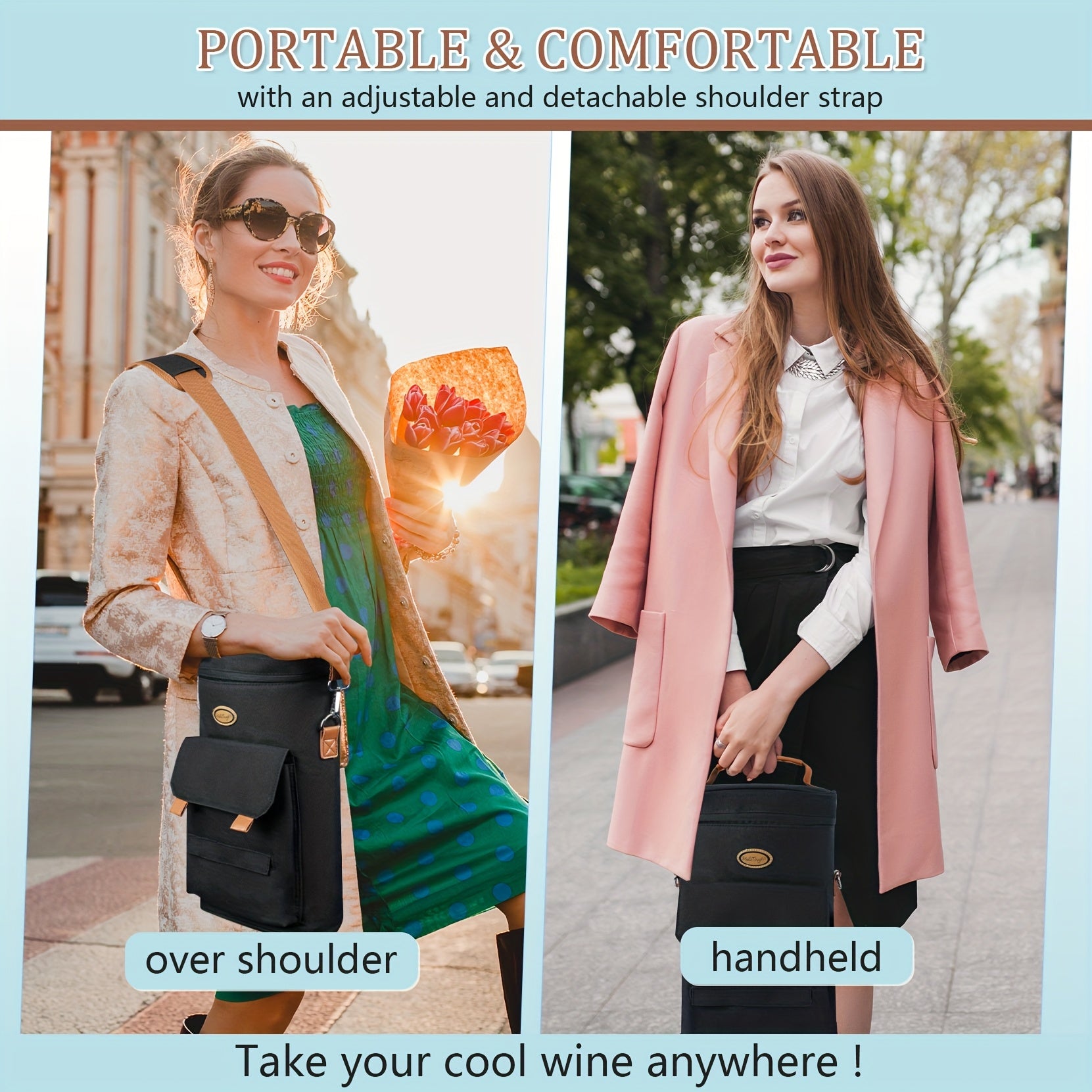 This wine carrier features a sturdy leather handle and an adjustable padded shoulder strap with a stainless steel buckle, allowing you to transport your wine effortlessly.The padded shoulder strap alleviates pressure, enhancing your comfort.It's perfect for taking wine to gatherings, dining events, restaurants, pool or beach outings, picnics, concerts, and sports events.