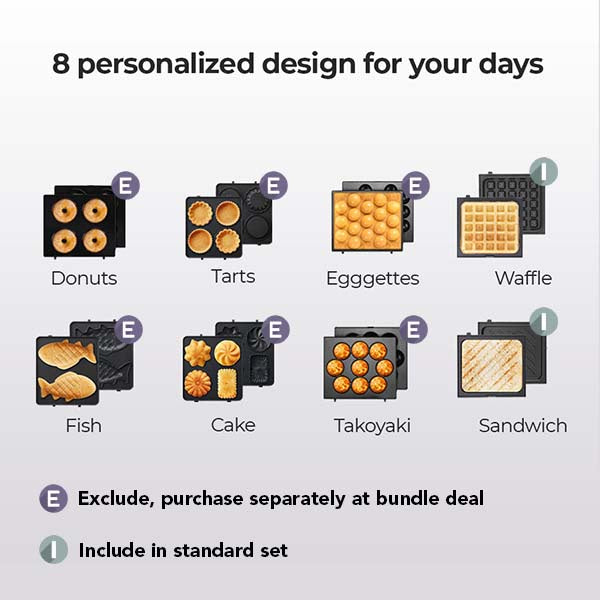 🎄Features:🧇8 IN 1 WAFFLE MAKER - Make all kind of breakfast & kuih-muih with one machine.🧇STYLISH DESIGN - Beautiful colour#Instagrammable.🧇NON-STICK - Detachable trays finished with a non-stick coating are easy to clean and make sure your snacks slide out easily when ready.🧇EASY TO STORE - The machine can be stood upright for storing conveniently in narrow kitchen spaces.🧇ADJUSTABLE TIMING - 1 to 30 minutes optional, different heating time corresponding to different ingredients, better and more convenient to deal with various ingredients.🧇ENGLISH MENU - Easy to use| Easy to use| Easy to use.Safe to use.🎀Specification: Product Name: 8 In 1 Waffle Maker / Sandwich Maker Rated Power: 650W Baking Pan: Aluminum Alloy Heating Mode: Double Ring Heating Product Size: 26 x 15 x 11cm💕Package Include💕Green / Pink Standard Set: - Waffle Maker Machine x1 - Waffle Tray x1 - Sandwich Tray x1 - English Menu x1 -   Plug x1 Add On Tray: (NOT INCLUDED, please purchase using add on deal to save more money $$$) - Donuts Tray - Eggettes Tray - Octopus Tray - Tarts Tray - Cake Tray - Fish Tray **Warm Tips: Please DO NOT heat the machine without tray, else it will damage the machine and void the warranty. *Notes: 1) The actual product colour may vary slightly due to the lighting and monitor display setting. 2) Kindly allow slight different due to manual measurement FREE TO RETURN / REFUND**⚠️Wrong Item Shipped⚠️Broken Items⚠️Missing Items⚠️Item Not Function📌Please keep the original box for warranty claim【No warranty if there is no box】
