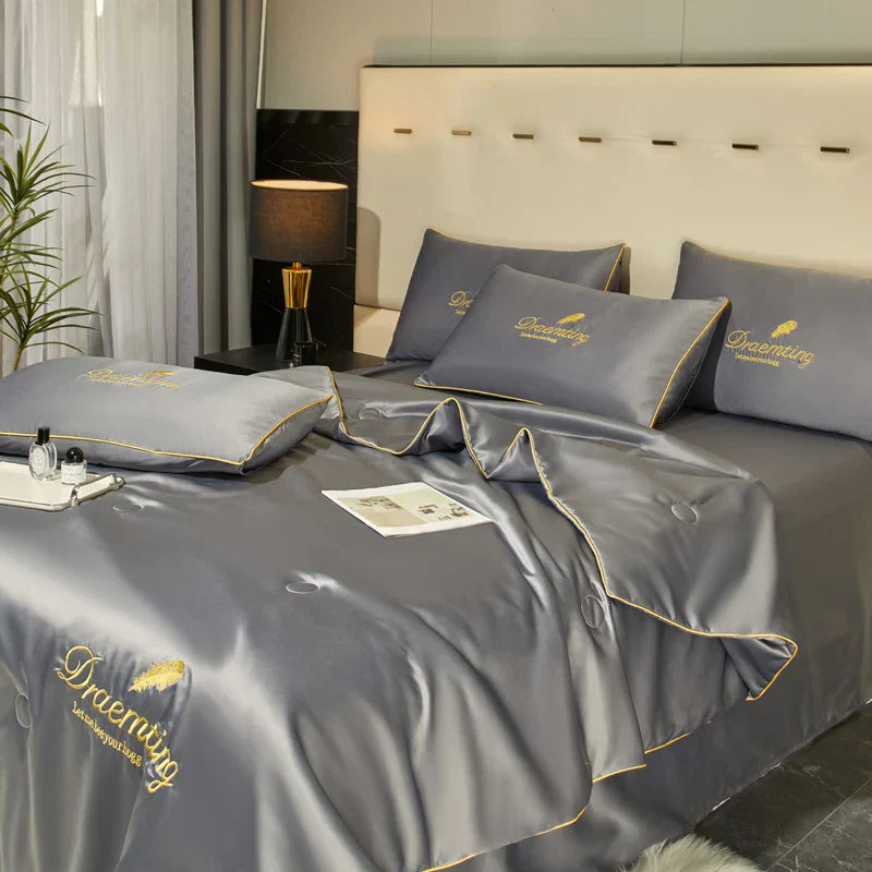 Simple Ice Silk Quilt(200*230cm)(With two pillowcases)
