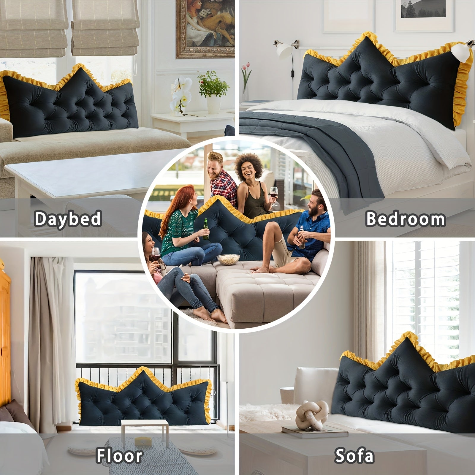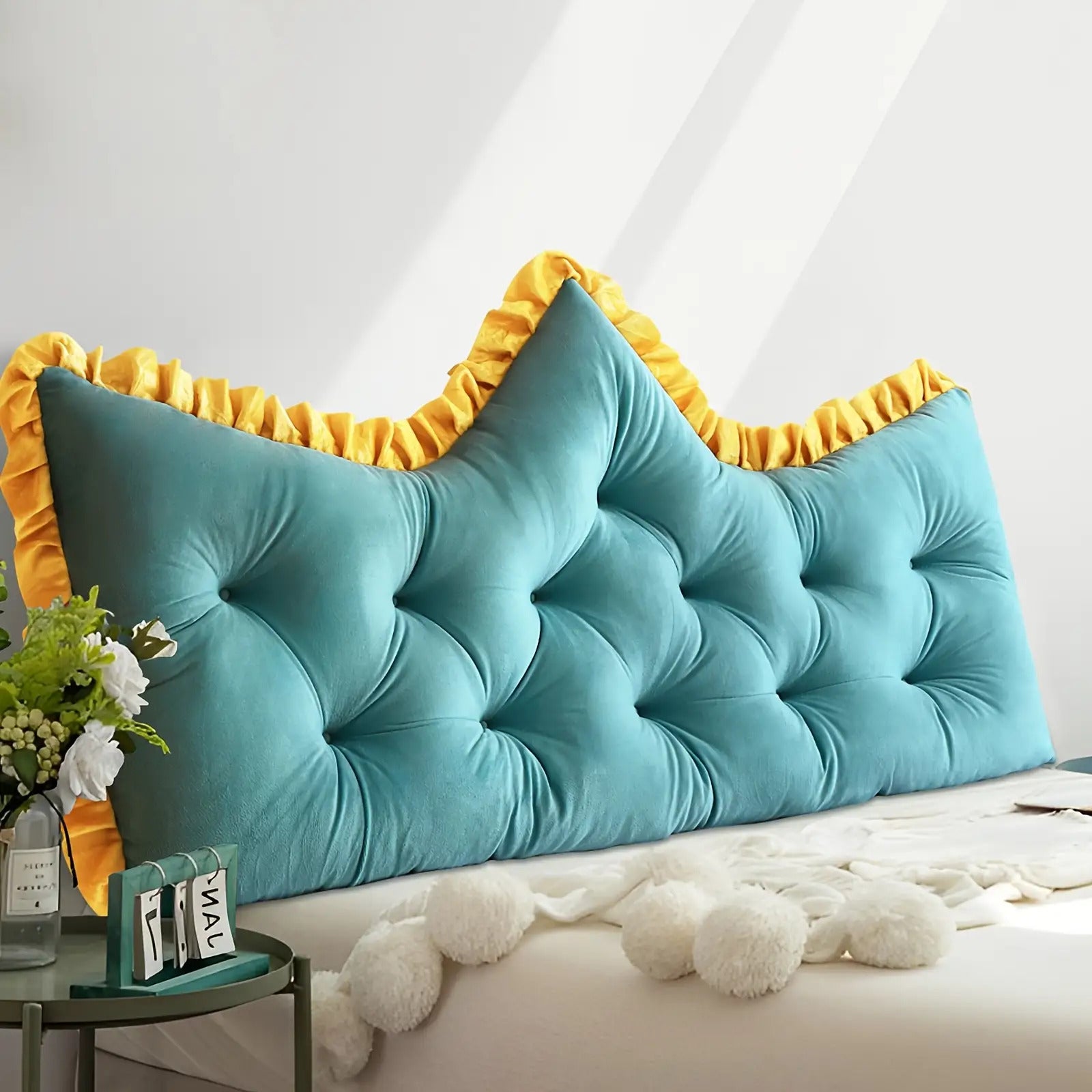 Vintage Style Tufted Backrest Pillow with Ruffle Trim