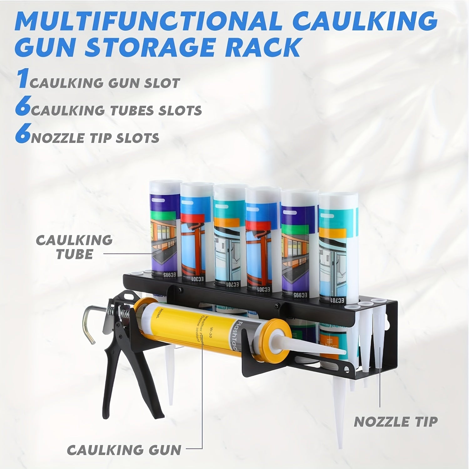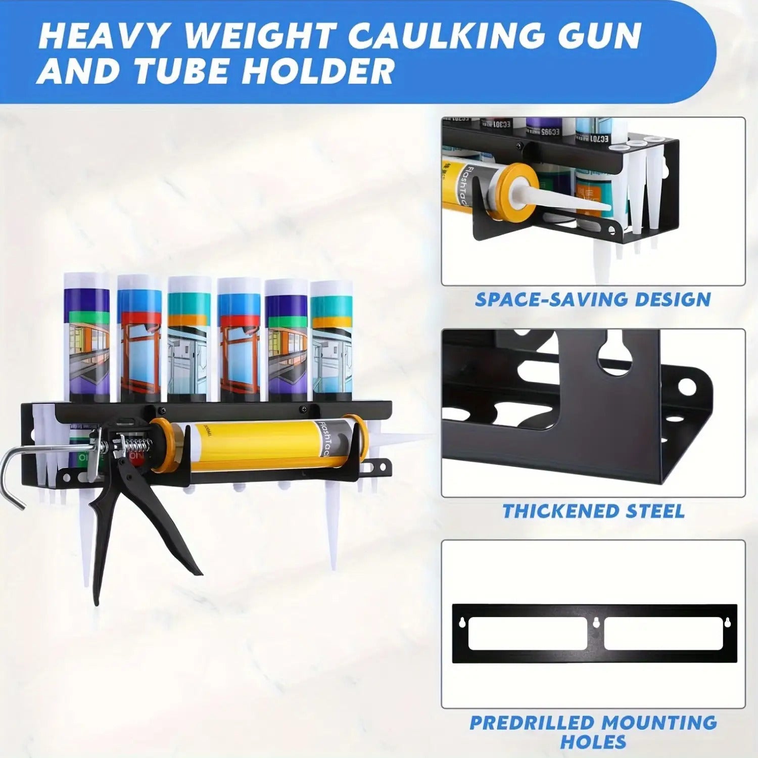 The holder is coated with a special material that prevents rust, making sure it stays in good shape even in wet or humid places.You can benefit from many years of using it without rust, while keeping your caulking tools neatly arranged and easily accessible.