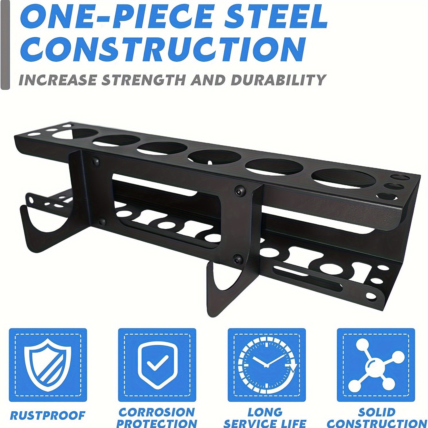 Simple Setup: With a user-friendly design, this holder can be easily installed.The included screw fitting in the package makes assembly a breeze, even for beginners.Its design enables convenient mounting without occupying too much workspace.It can be mounted on a tool shed, cart, or wall by connecting the base horizontally to the rack.Pre-drilled mounting holes and hardware are provided for a swift and effortless installation.
