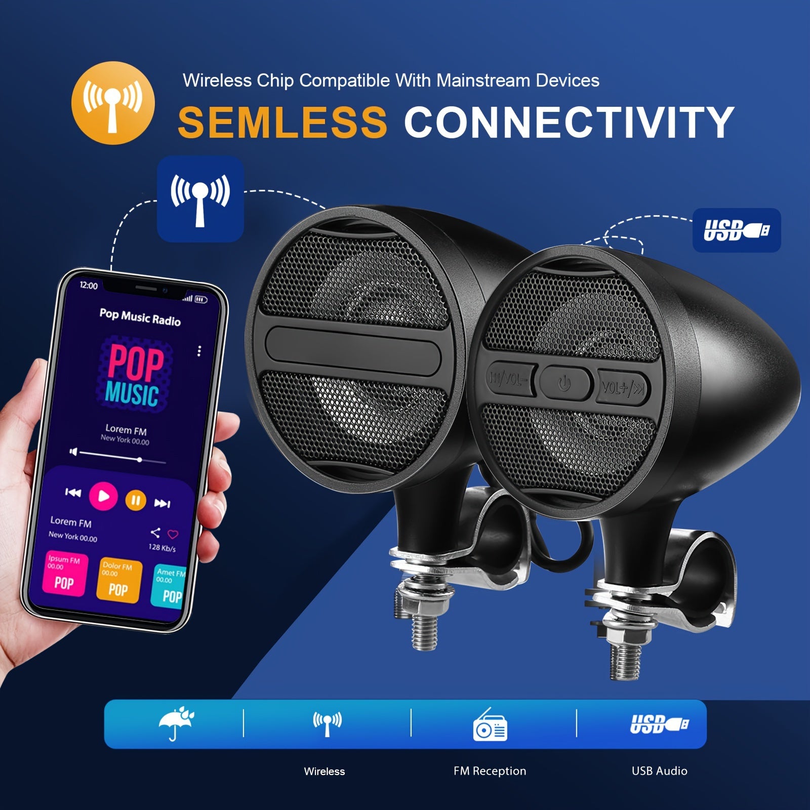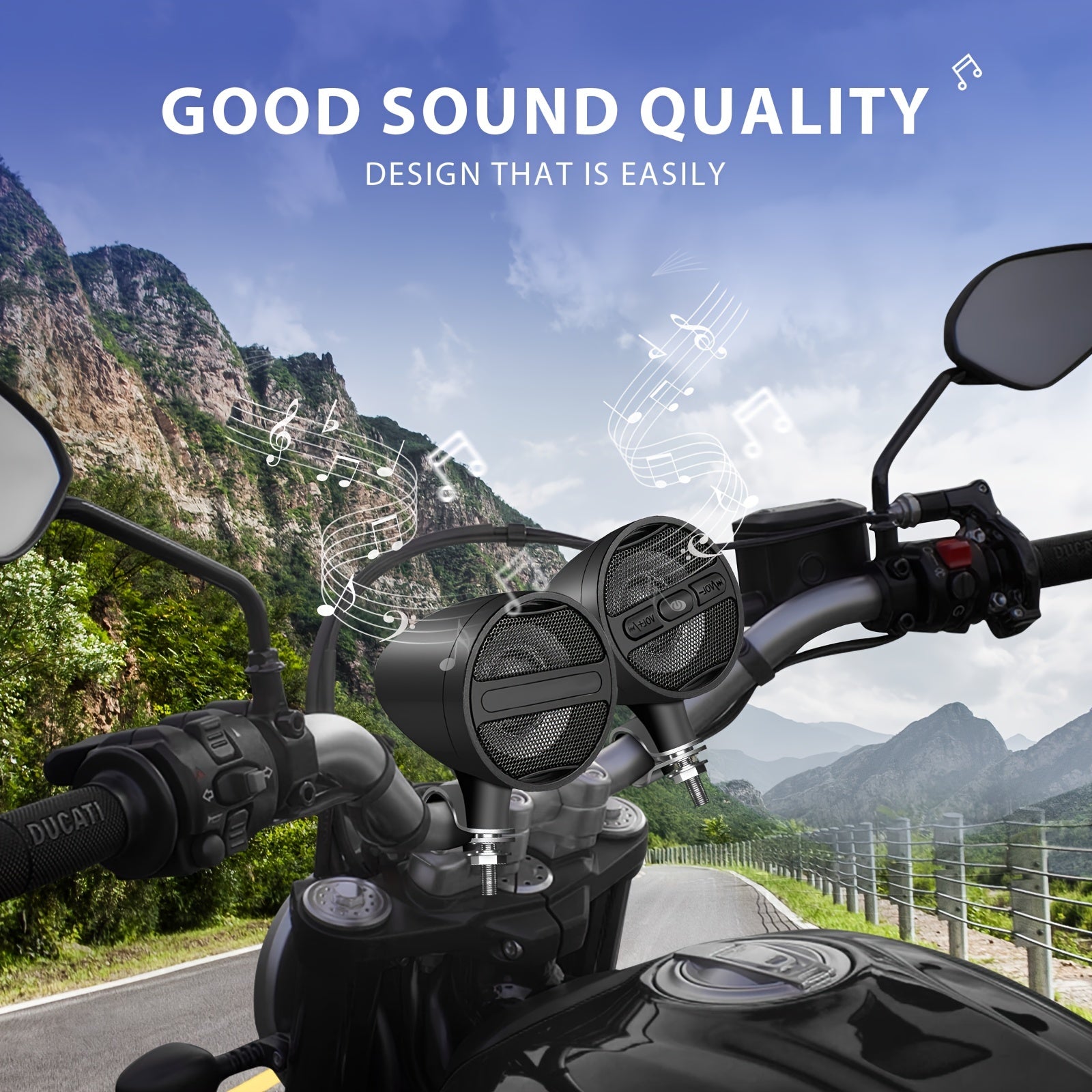 Motorcycle handlebar speaker with all-metal appearance design Suitable for men's motorcycles Support Wireless connection music playback Support FM radio function; automatically search and store channels