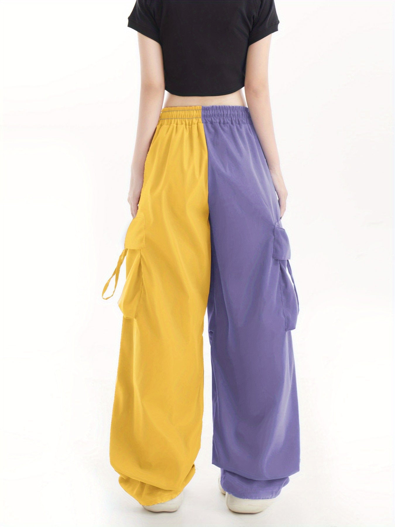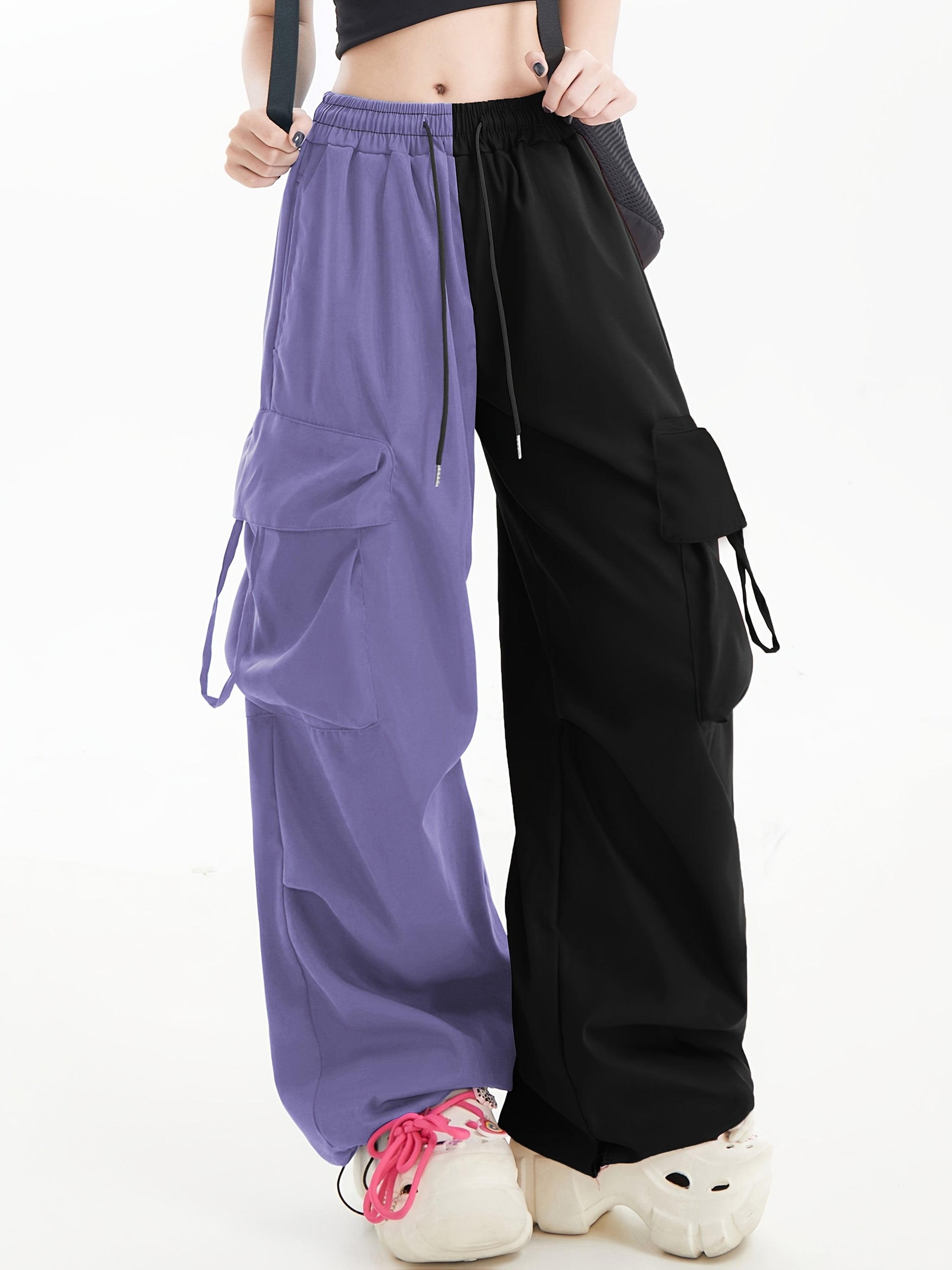 Women's High-Street Casual Cargo Pants - Two-Tone Color Block